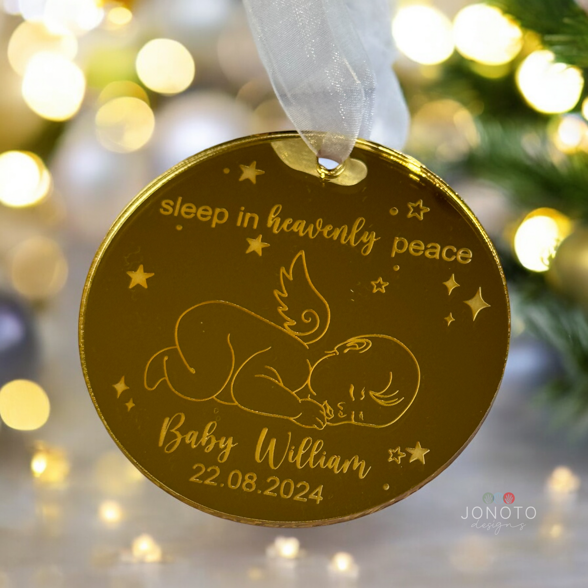 Remember and honour the little one who holds a special place in your heart with our beautifully crafted Baby Loss Memorial Christmas Ornament. This delicate keepsake serves as a meaningful tribute to babies who are no longer with us, creating a gentle reminder of their eternal presence during the holiday season.
