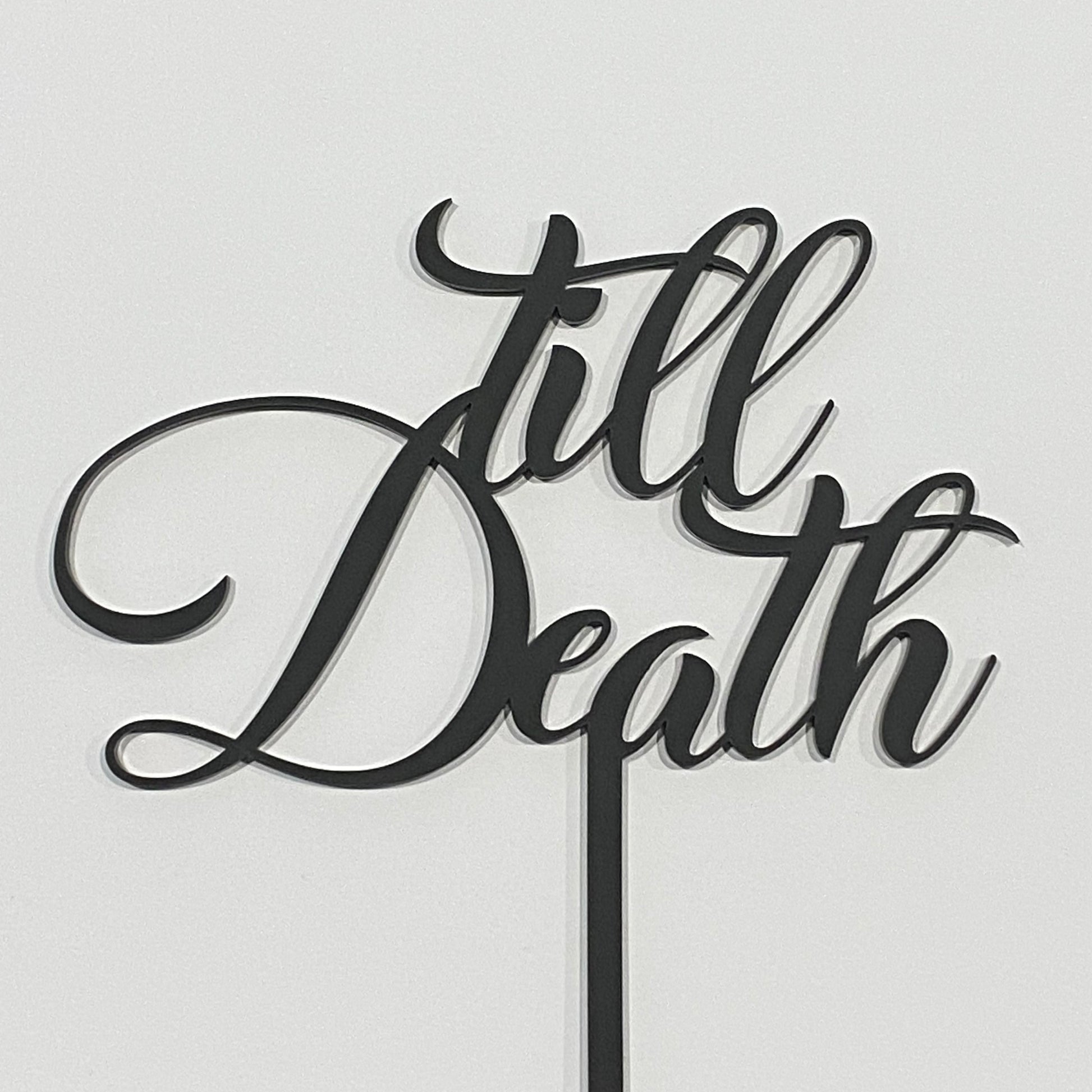 Fulfill the timeless promise of "till death do us part" with this charming cake topper for your wedding.