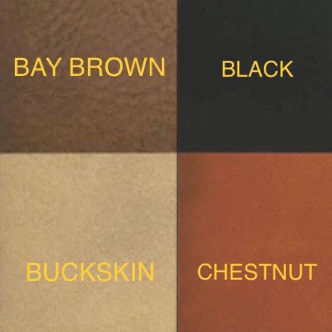 The leatherette bottle/can holder is available in 4 colours - Iron Gray, Buckskin, Chestnut & Black. The holder is laser engraved, the engraving will be in black apart from the black holder which will have silver engraving.