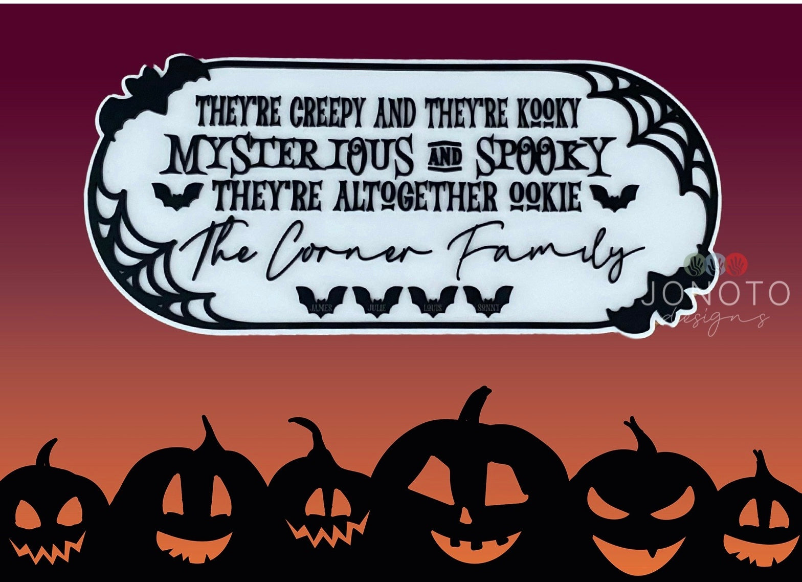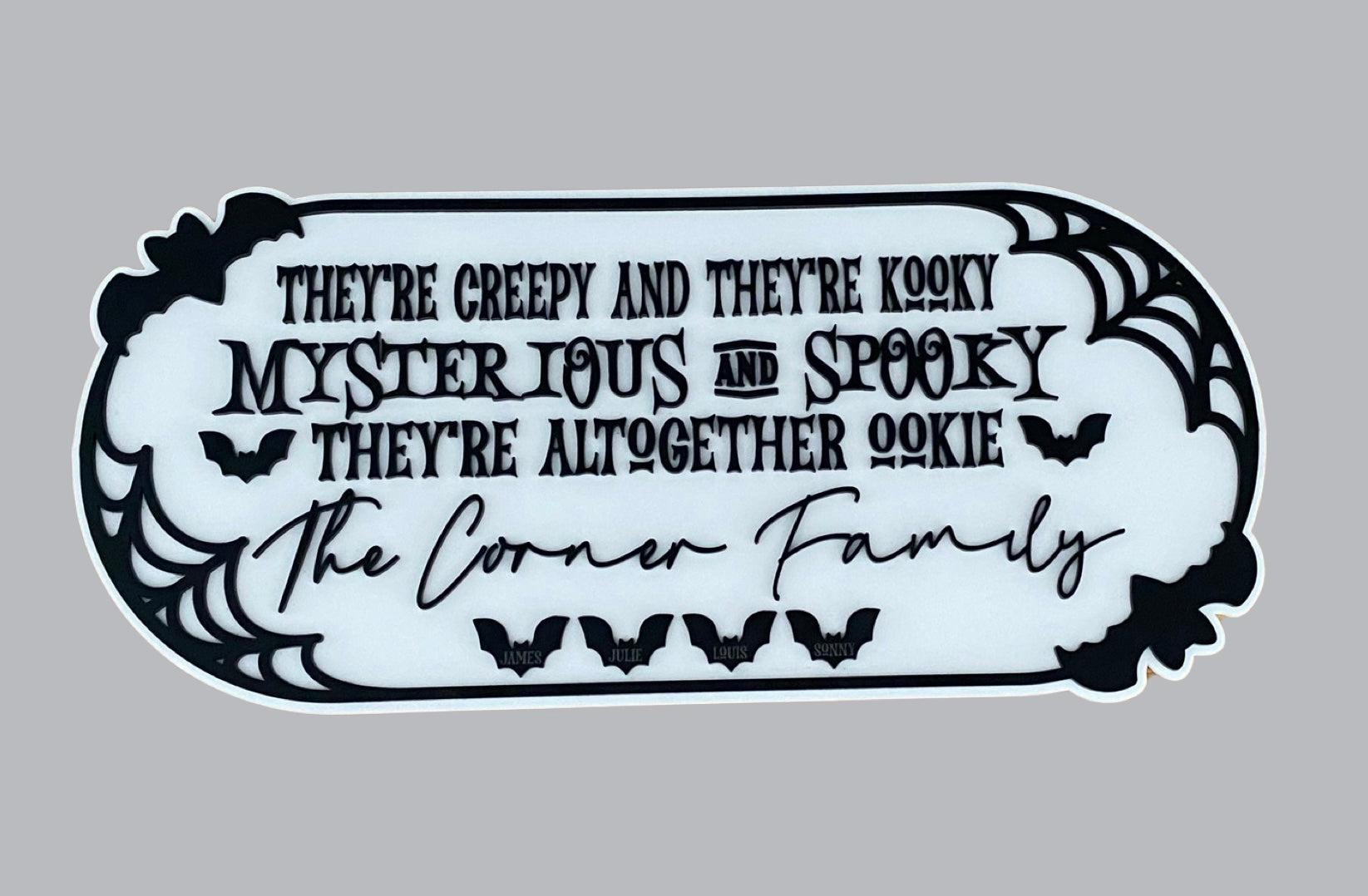 Greet Ghosts & Goblins in style with a personalised Halloween house sign. Personalise with your family’s last name and optional to add first names onto the bats underneath. Please add details to comment box when ordering.