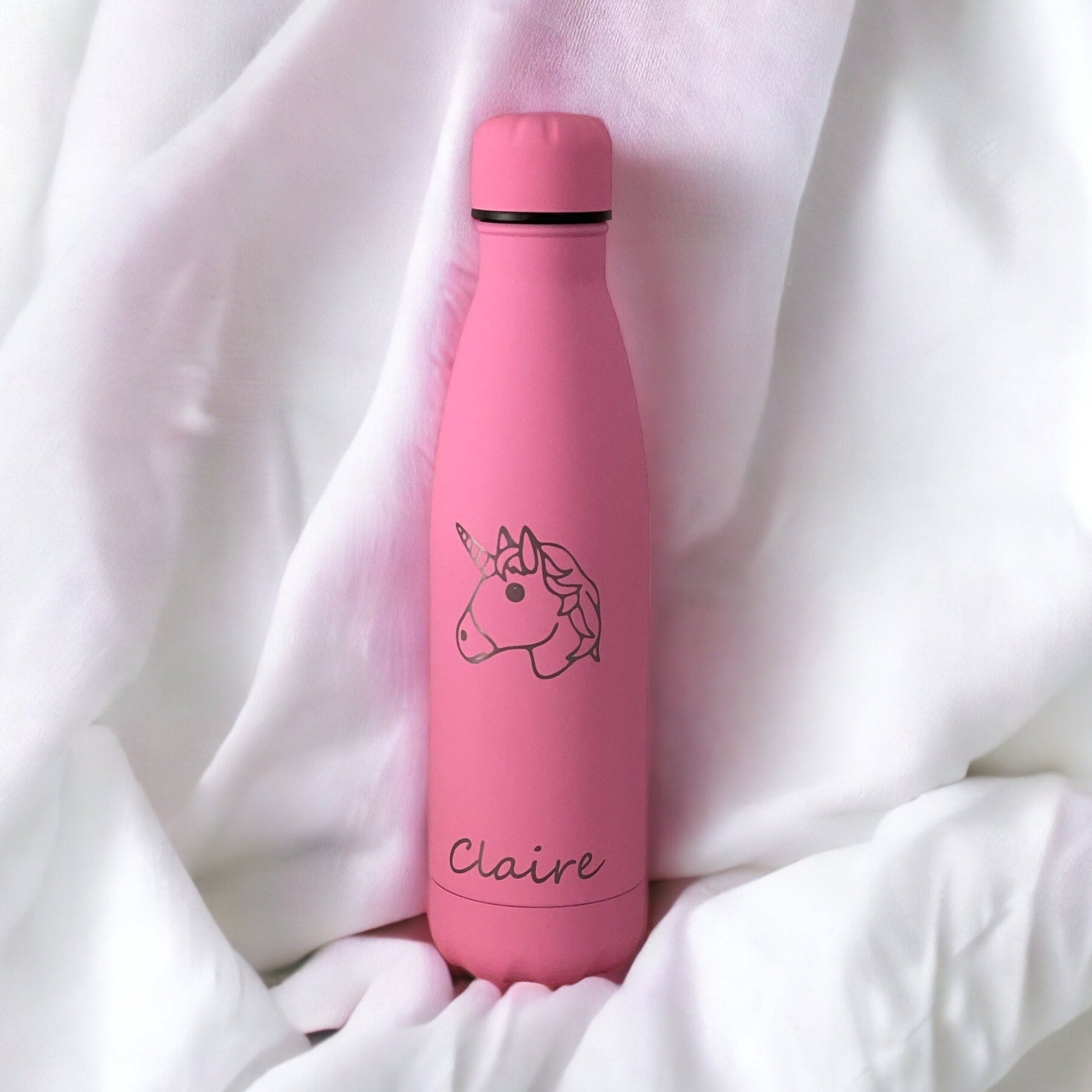 Tired of name stickers falling off your children's water bottles, then our laser engraved water bottle is the perfect solution! Add name & font choice to comment box.