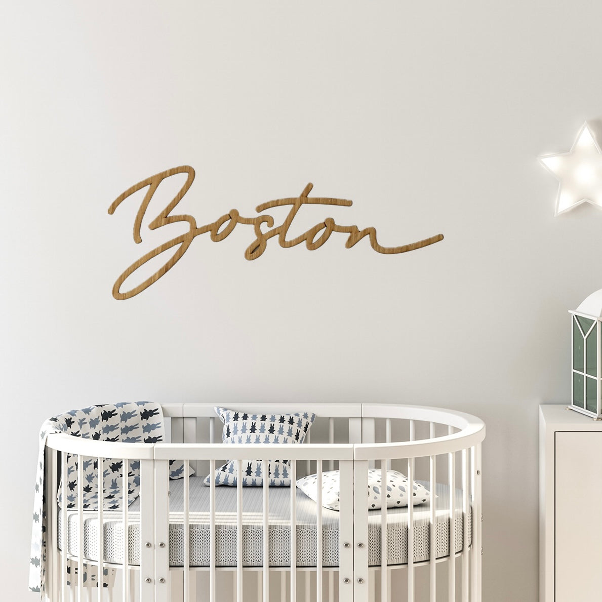 Available in Bamboo or acrylic, and four different widths (the height will depend upon the length of the name).